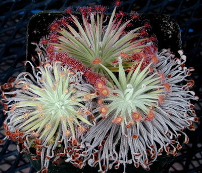 Drosera DERBYENSIS или Росянка Дербенская - австралийский тропический вид, растения живут в постоянно теплой зоне, но в нерегулярно влажных условиях, не нуждается в прохладной зимовке.