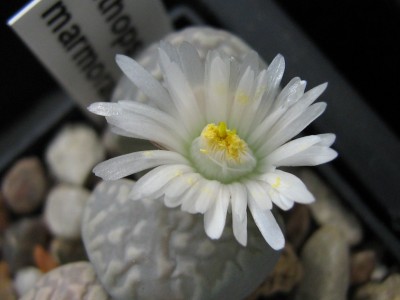 Описание культивара:Диаметр пары листьев 1-2 см. Верхняя поверхность листьев серо-зеленая, с более темным мраморным рисунком. Цветки 3-5 см в диаметре, белые, с приятным запахом.